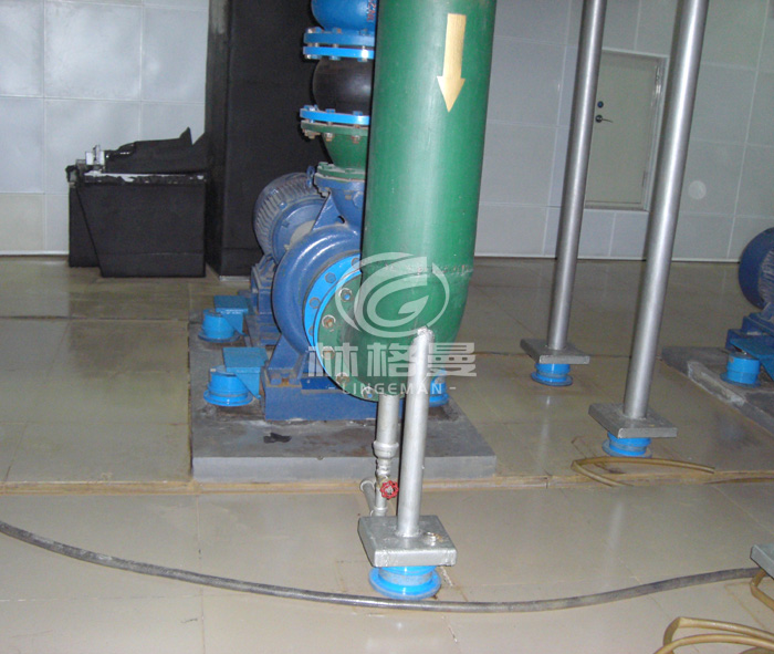 1、空調主機和水泵安裝彈簧減振器這樣可使空調主機和水泵運行時產生振動源消除,對振動產生的噪聲起到有效解決。